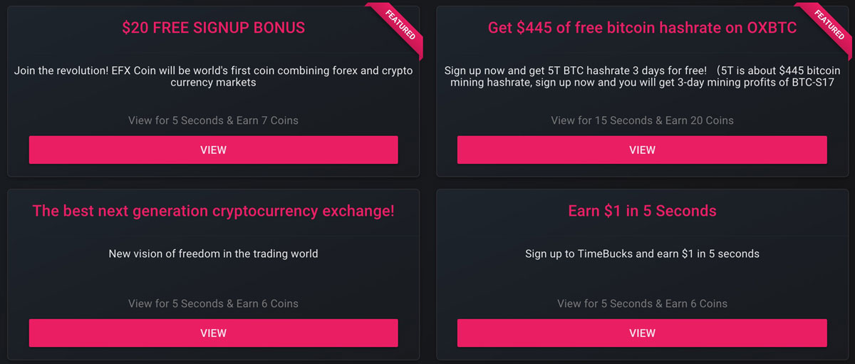 PTC Ads pay you a small amount of Coins to click a link and visit a website. Advertisers may be seeking traffic, subscribers, or referrals. Each PTC ad clearly shows how much it pays before you click.